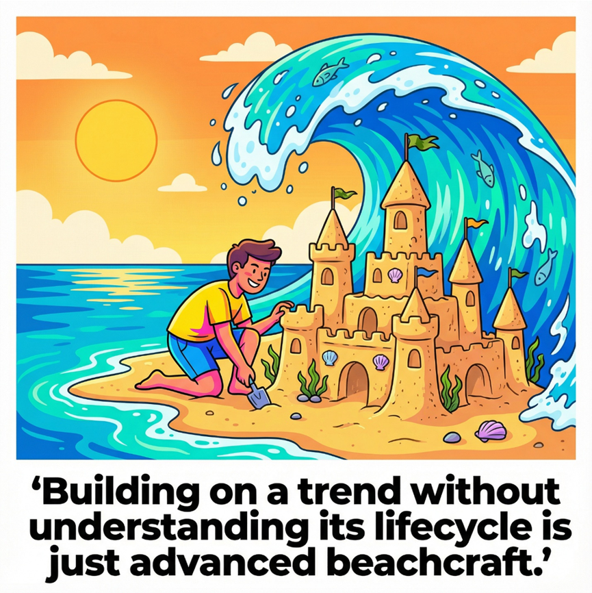 The sandcastle metaphor isn’t about avoiding trends. It’s about understanding their lifecycle before you commit capital and credibility. Too many digital strategies treat “what’s hot now” as if it’s “what will matter forever.” The result? Beautifully constructed initiatives that the market tide sweeps away before they deliver value.